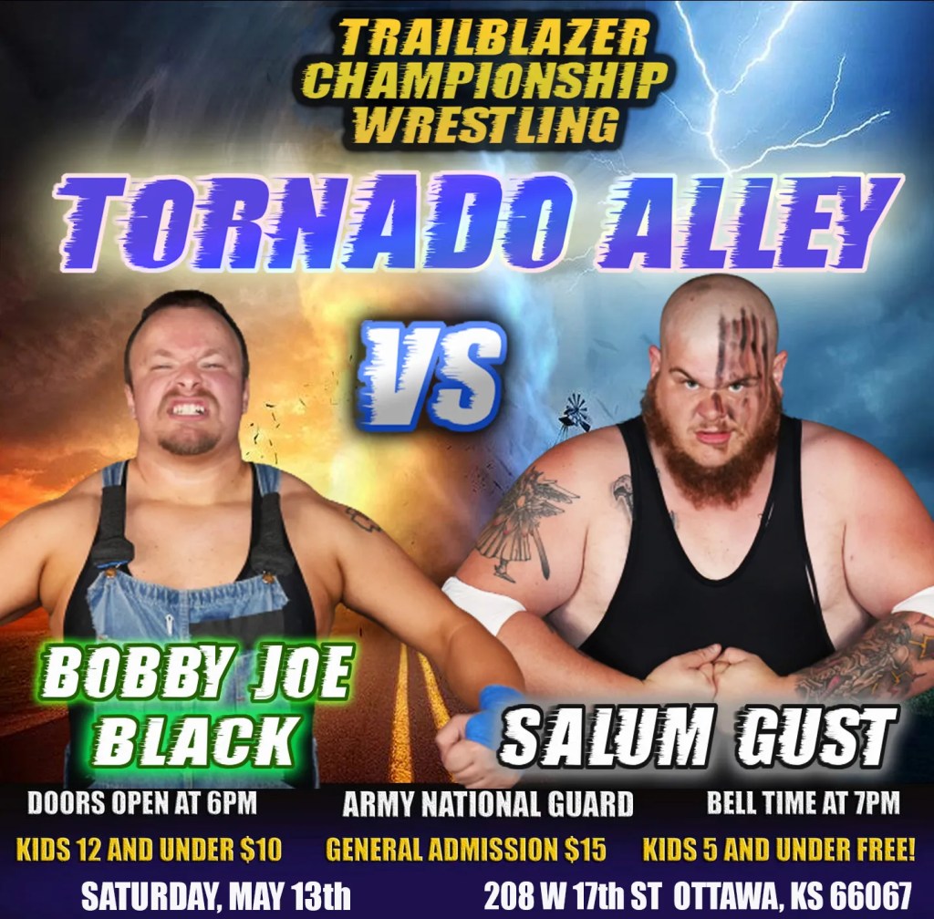 Match highlights of “THE UNATURAL DISASTER” Salum Gust VS Bobby Joe Black (W/Johnnie Jo Black) at our May 13th, 2023 event “TORNADO ALLEY”