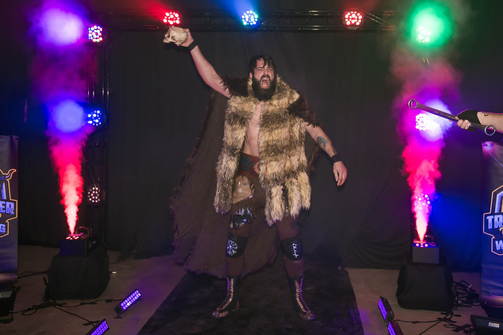 Below are images of the qualifying first-round match-up between “Astonishing” Austin Mulitalo and Rocco The Barbarian w/ Dekin Cane at Trails to the Gold in the Trailblazer Heavyweight Championship Tournament. Images courtesy of Jamie Brown Studios. (slideshow). Check back throughout the week for more images from Trails to the Gold and get ready for our Next show on May 18th!