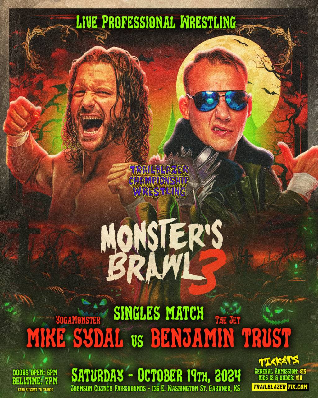 Saturday, October 19th “YOGAMONSTER” Mike Sydal faces off against “The Jet” Benjamin Trust making his Trailblazer debut live at MONSTER’S BRAWL 3!
