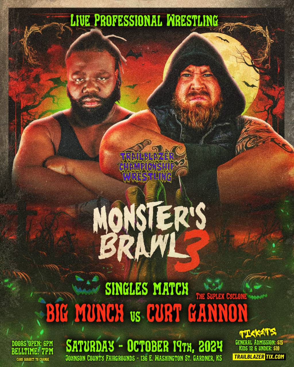 Saturday, October 19th BIG MUNCH will be making his Trailblazer debut facing off against “The Suplex Cyclone” Curt Gannon at MONSTER’S BRAWL 3!