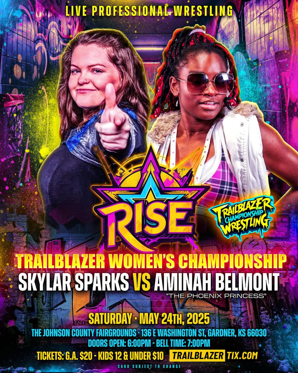 In our Main Event, Skylar Sparks will face off against “The Phoenix Princess” Aminah Belmont in this historic match to crown our first Trailblazer Women’s Champion at RISE!